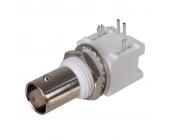 Leírás: Csatlakozó, BNC 90° 50Ohm aljzat, NYÁK-ba BNC szigetelő:POLYPROPYLENE
