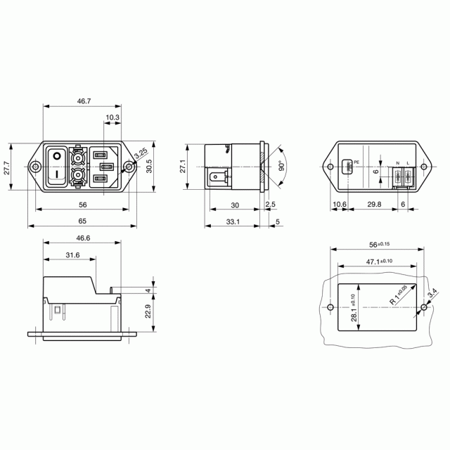 Leírás: Csatlakozó, hálózati csatlakozó dugó, beépíthető, 250V/7A, biztosíték fedő fedő:4301-1401